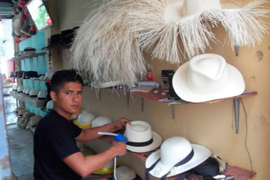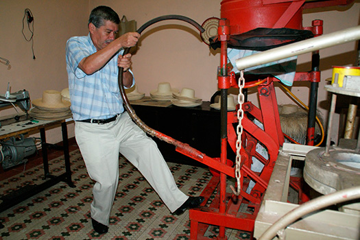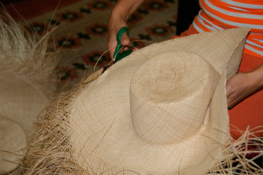 3. El acabado. Otro grupo de personas procesan los sombreros semiterminados, para darle sus acabados y exportarlos a todo el mundo.
